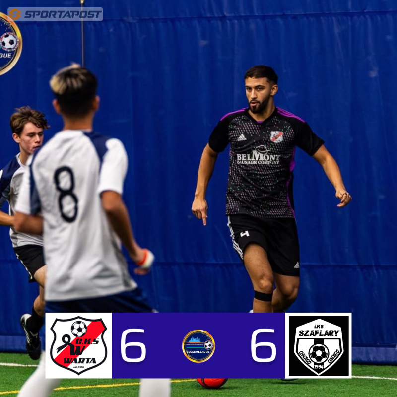 Warta blew a 5:1 lead as they split points with Szaflary in a Polish Derby night at the Naperville Yard.